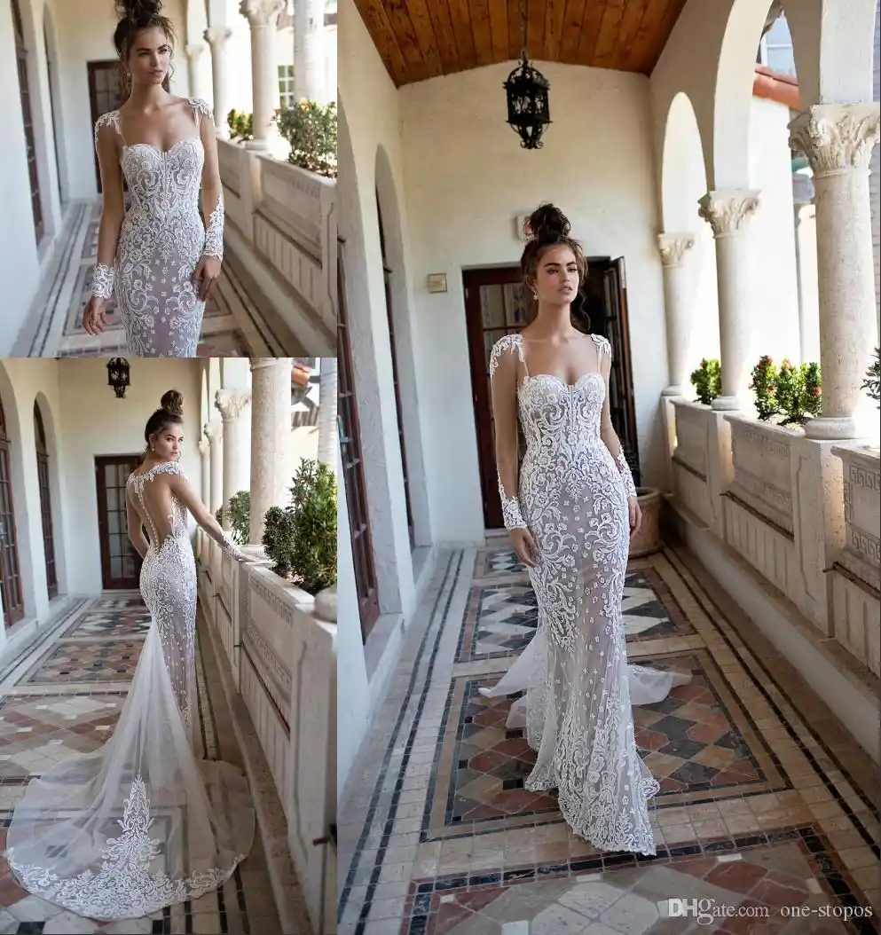 2020 New Berta Wedding Dresses Mermaid Sweetheart Long Sleeves