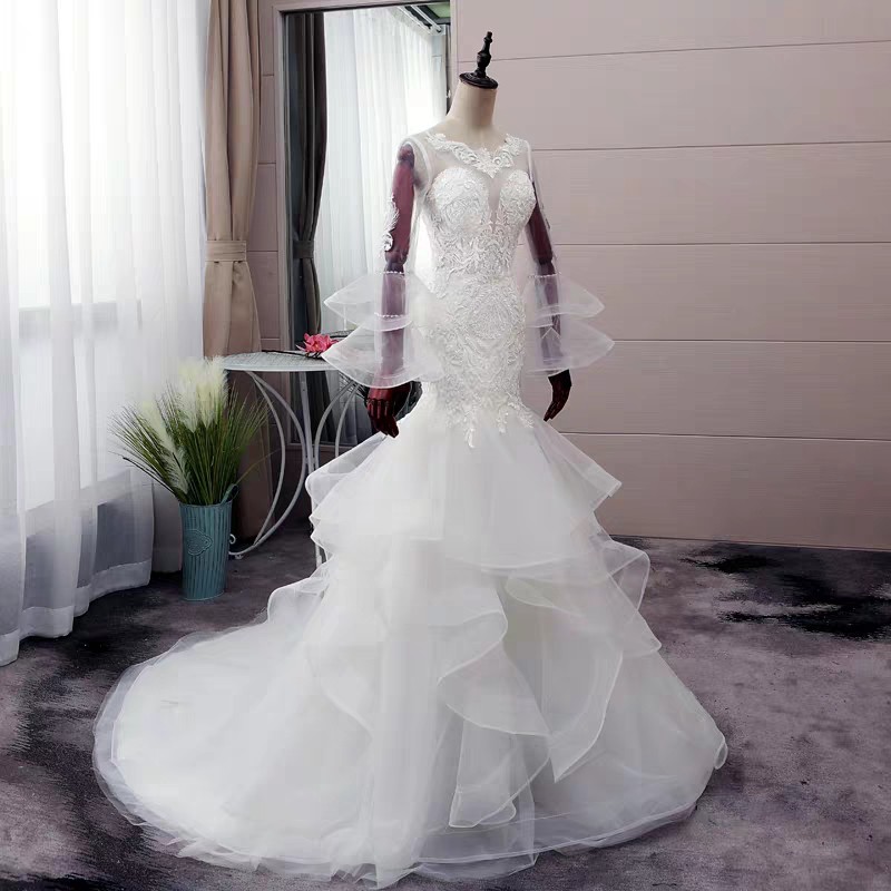 Wedding Dress New Sexy Fishtail Wedding Dress Long Sleeved Water