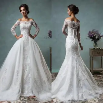White Mermaid Long Sleeve Wedding Dress Rb0879 Wedding For
