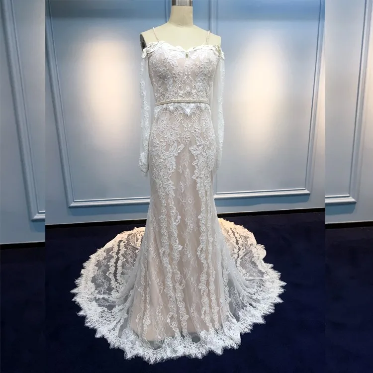 Long Sleeve Lace Fishtail Wedding Dress For Perfect Celebration