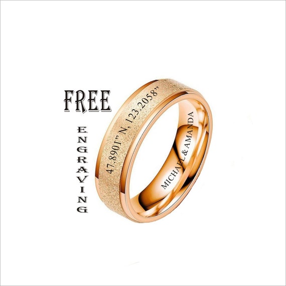 Titanium Ring Engraved Gps Latitude Longitude Or Etsy
