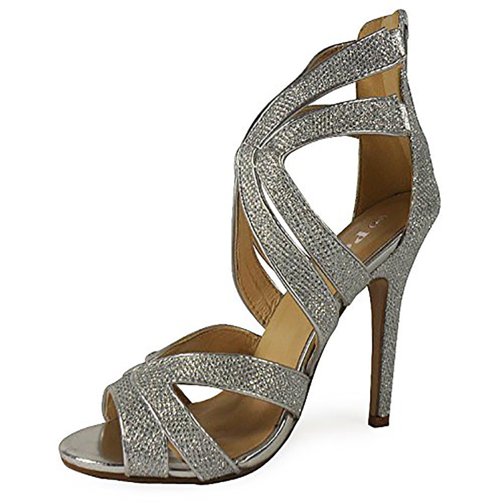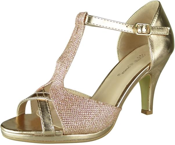 Loudlook Womens High Heel Peeptoe Glitter Party T Bar Bridesmaid