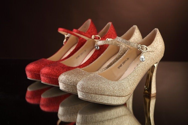 Women Bridesmaid Shoes Glitter Sandals Buckle Sandals Gold